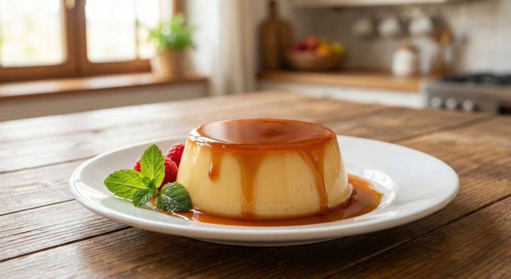 Signature Mini Flan: Smooth, creamy condensed milk custard topped with a decadent golden caramel glaze.